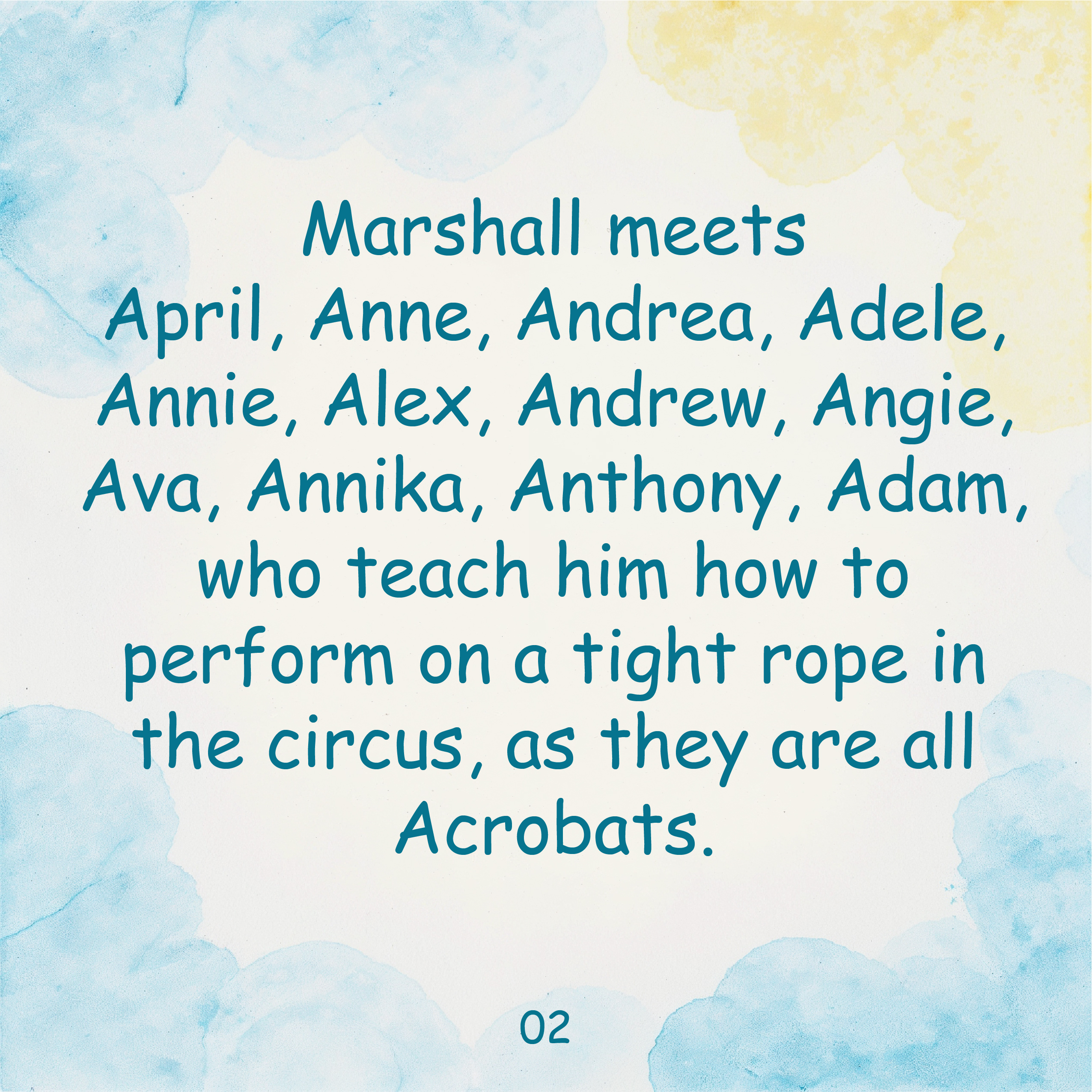 From Acrobats to Zookeepers, Marshall meets new friends each day who teach him exciting skills and open his eyes to a world of possibilities. This playful, educational story boosts letter recognition, sparks curiosity, and encourages kids to dream big.